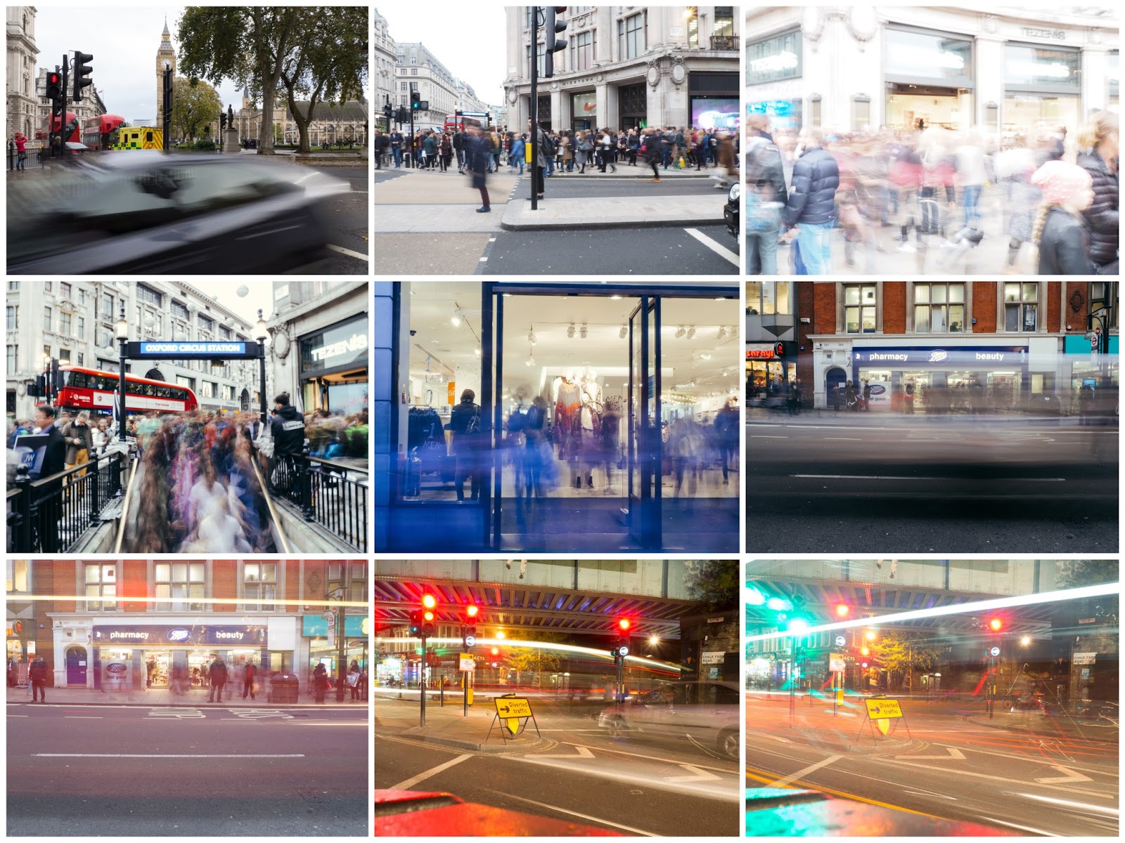 For my second location I went in the busy streets of London in Oxford Circus and Piccadilly Circus. The pictures I've taken in Southampton, mainly due to the overall focus of the composition, don't look abstract or painting-like. Because of that in London I experimented with the second technique of Ernst Haas' photos to capture motion in an abstract way: moving the camera during exposure. Therefore I decided to try not using the tripod to achieve the desired effect. In the first pictures I simply started capturing cars or people crossing the streets. Using long exposure - and balancing ISOs and aperture - the subjects leave a light and ghostly blur: